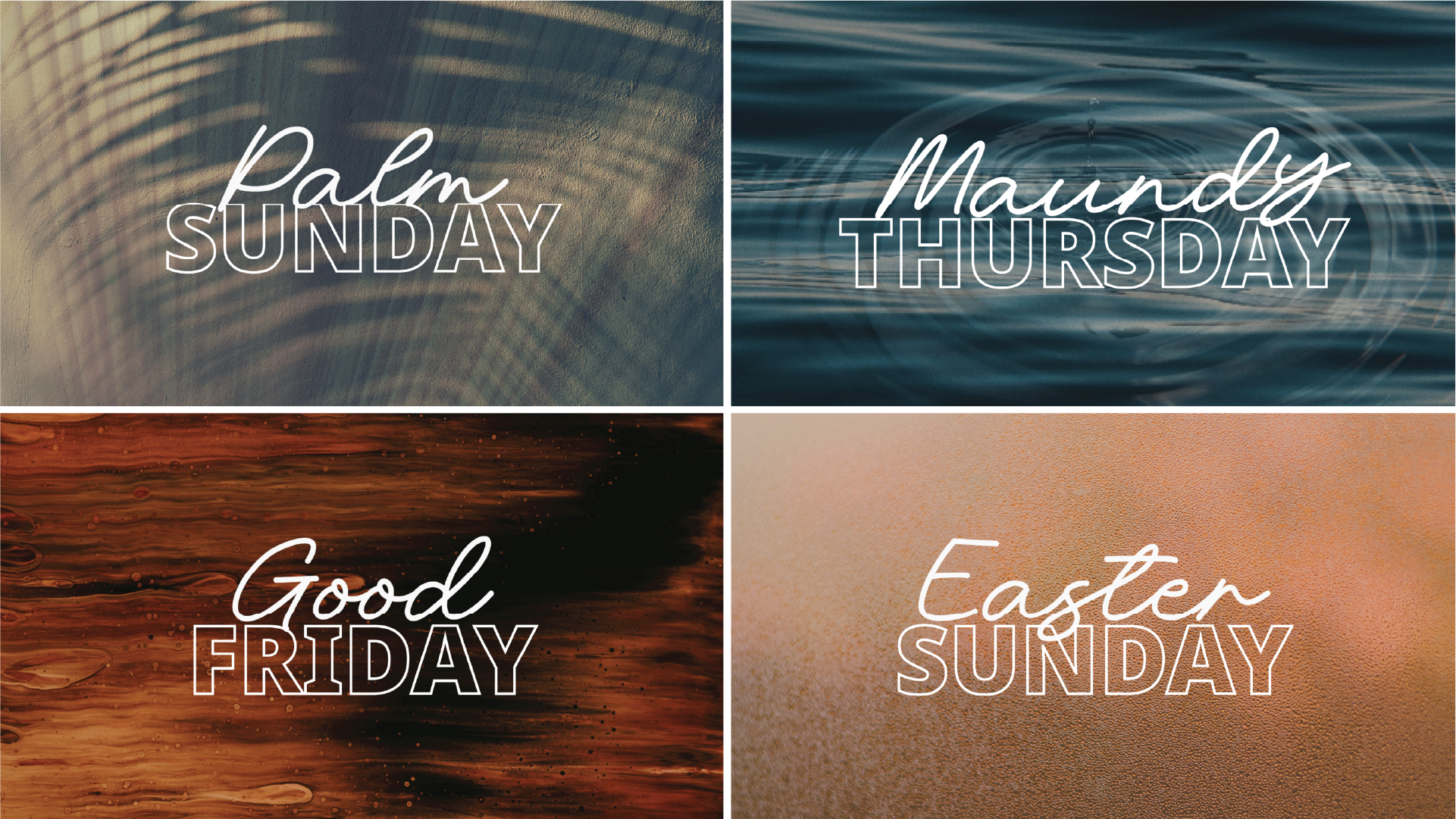 Holy Week is the week leading up to Easter Sunday. This is a time set aside to pause our regular rhythms of church and remember the journey that Jesus took to the cross, where he paid the price for our sin. On Easter Sunday, we look to the surprising hope of Jesus’ resurrection.